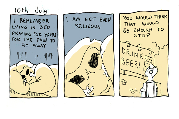 AUTOBIO. ALCOHOL. DIARY. An Autobiographical diary comic about the day to day struggles of quitting alcohol. Luke Humphris drags his negative traits into the sunlight and tries to figure out where he belongs in this world.